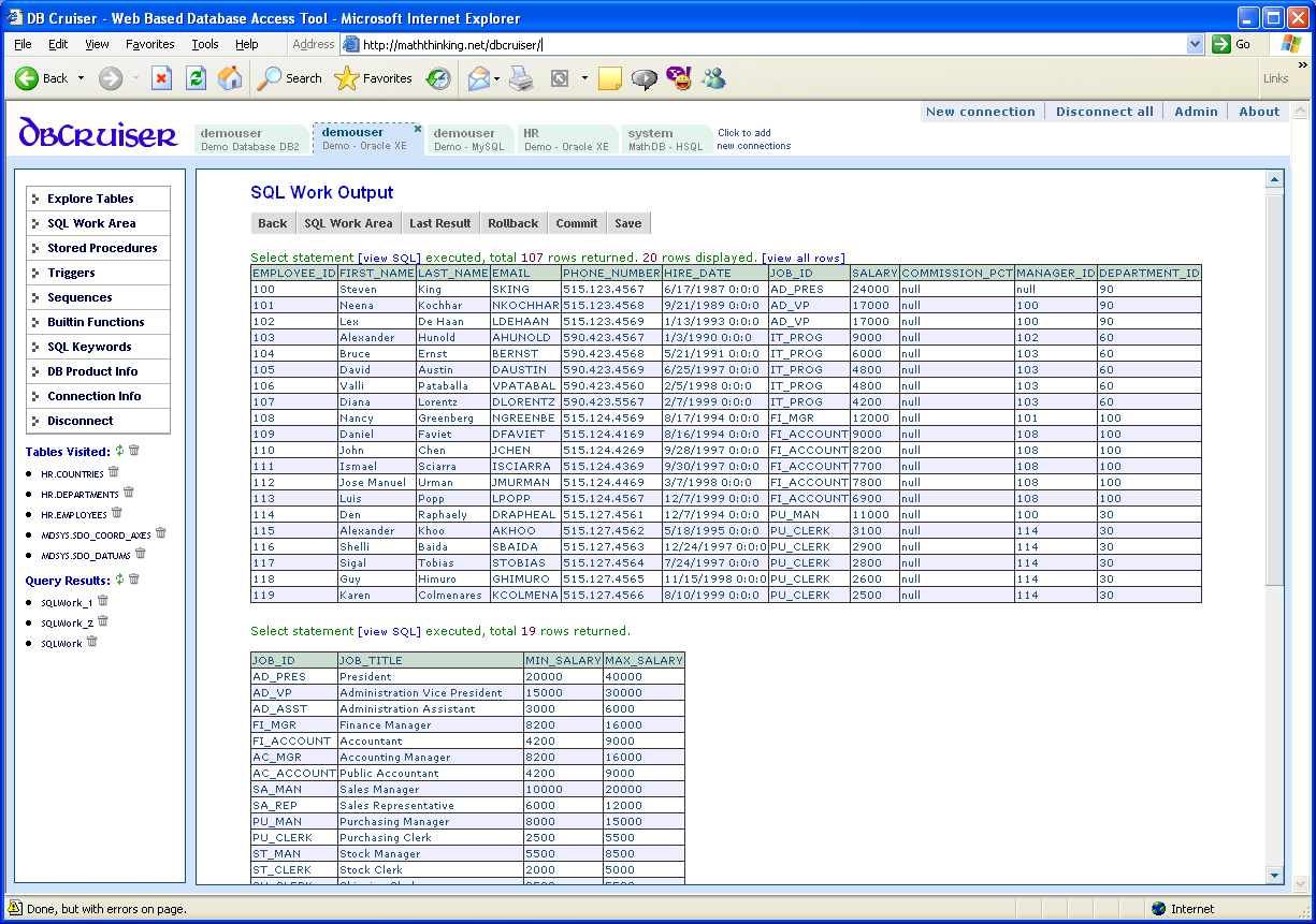 SQL Work Area - Output
