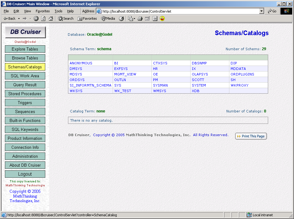 By selecting Database Schemas on the left-hand menu bar, Database Schemas panel will be displayed on the right, as shown on the screen above.