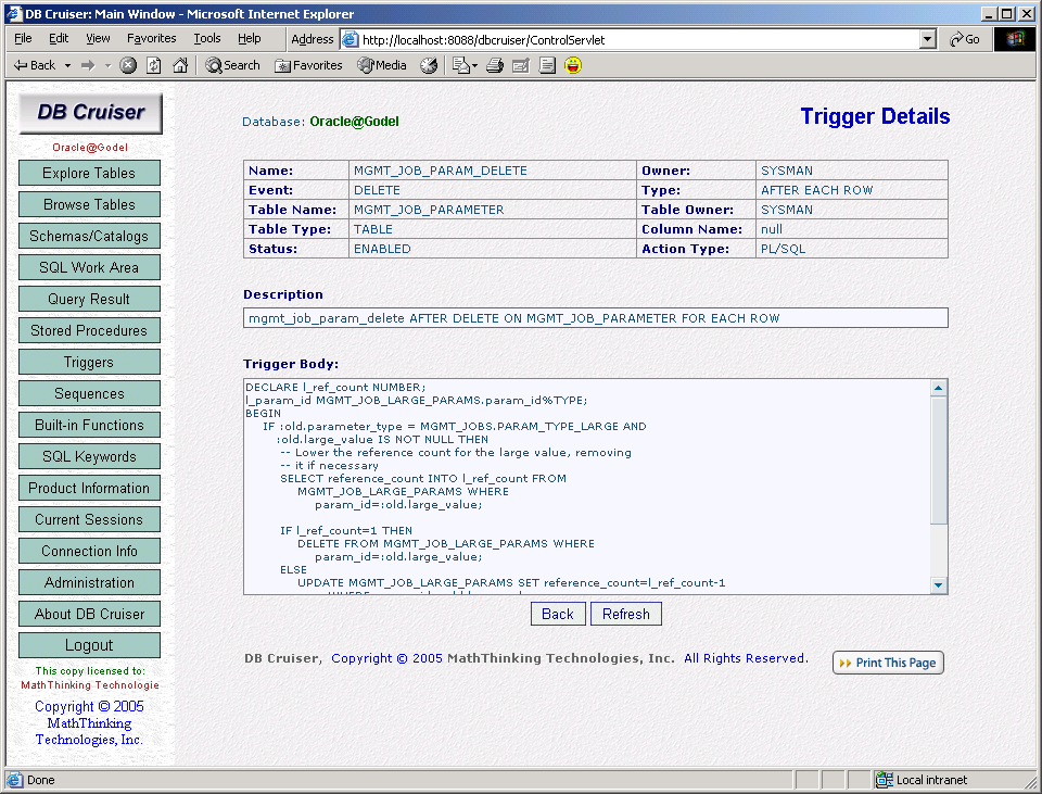 DB Cruiser -- Trigger List: