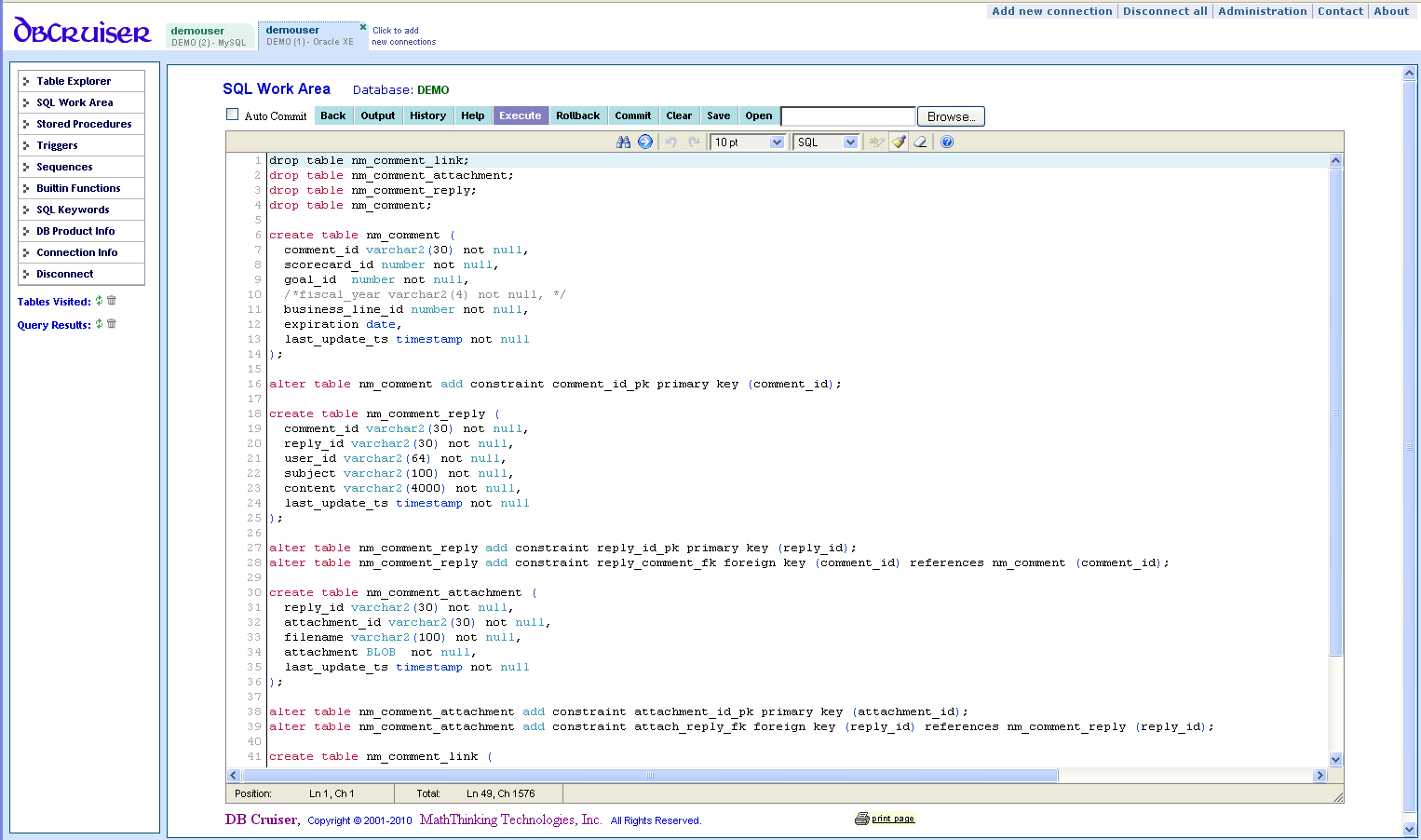 SQL Work Area - SQL Syntax Highlighting